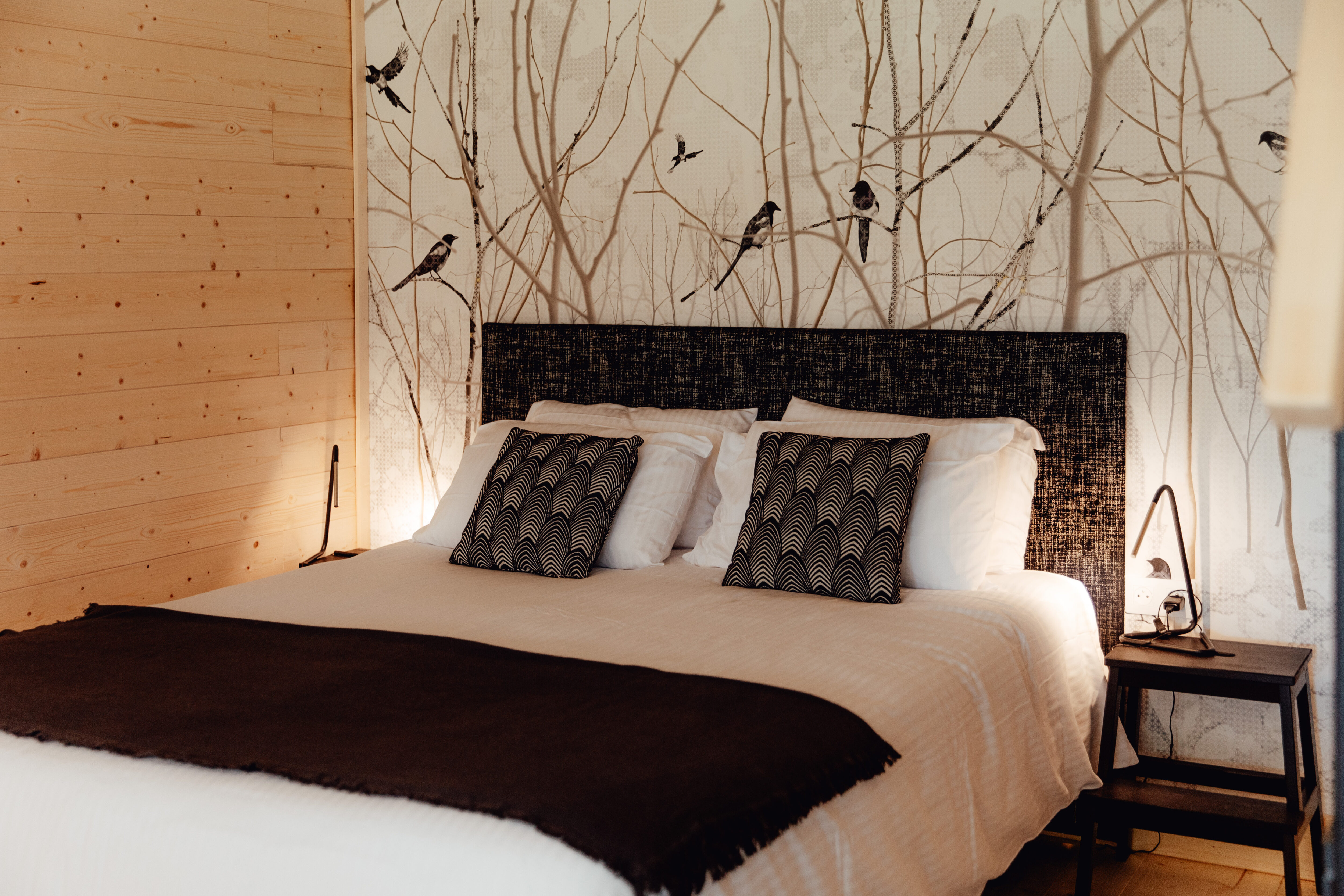 Habillée de bois de sapin du Jura, la chambre séduit par son ambiance chaleureuse et son élégance naturelle. Les matériaux authentiques et la décoration épurée créent un cadre rassurant et harmonieux, propice au repos des petits comme des grands.